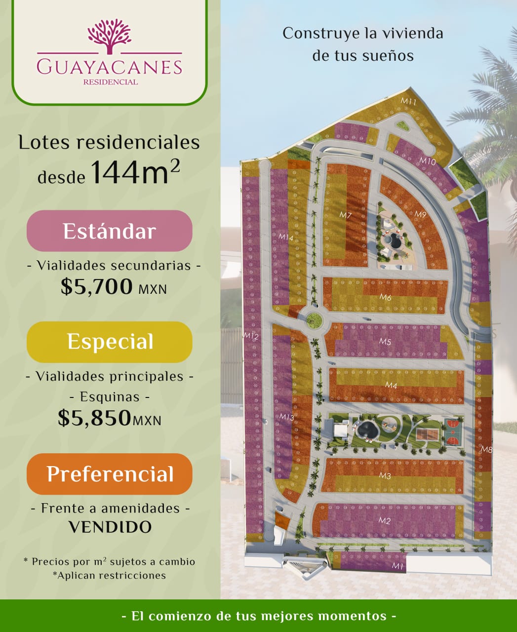 Guayacanes es un residencial privado, con barda perimetral y seguridad las 24 horas del día. Cuenta con dos Pool Center, cada una de ellas incluye: terraza club, baños, alberca, área de juegos infantiles y estacionamiento.